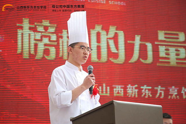 報(bào)告會(huì)伊始,山西新東方烹飪學(xué)校創(chuàng)就業(yè)指導(dǎo)中心的負(fù)責(zé)人滿懷熱情地走上臺(tái)前,他的臉上洋溢著自豪與喜悅。師主任首先代表全校師生,向各位優(yōu)秀學(xué)子的蒞臨表達(dá)了最熱烈的歡迎和衷心的感謝。