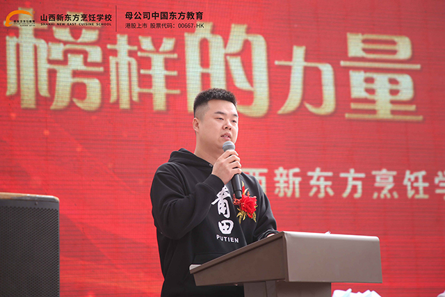 山西新東方烹飪學(xué)校校區(qū)負(fù)責(zé)人為本次成功學(xué)子報(bào)告會(huì)致辭,廖主任對(duì)本次培訓(xùn)的成功舉辦以及所取得的顯著成績(jī)給予了高度評(píng)價(jià)。他說:“這次的培訓(xùn)不僅是我們學(xué)校教學(xué)成果的一次展示,更是我們?nèi)熒餐Α⒉恍缸非蟮慕Y(jié)果。”他的話語中充滿了自豪和欣慰。接著,廖主任寄語全校師生,希望在新的起點(diǎn)上,大家能夠揚(yáng)帆起航,將報(bào)告會(huì)上所傳授的知識(shí)真正內(nèi)化于心、外化于行。隨后,廖主任用充滿激勵(lì)的話語結(jié)束了他的致辭:“行而不輟,未來可期。只要我們堅(jiān)持不懈,勇往直前,就一定能夠創(chuàng)造出更加輝煌的明天!”他的話語如同一道明亮的燈塔,照亮了全校師生前進(jìn)的道路,也激發(fā)了大家心中無限的希望和憧憬。