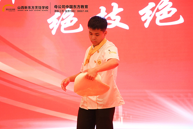 千年技藝,薪火相傳。山西新東方面食表演社團(tuán)先后推出“高蹺呼啦圈剪刀面“舞蹈扯面”“甩餅"“面氣球”“車輪刀削面”等面食技藝表演,并成為學(xué)校對外宣傳的一張響亮的名片。