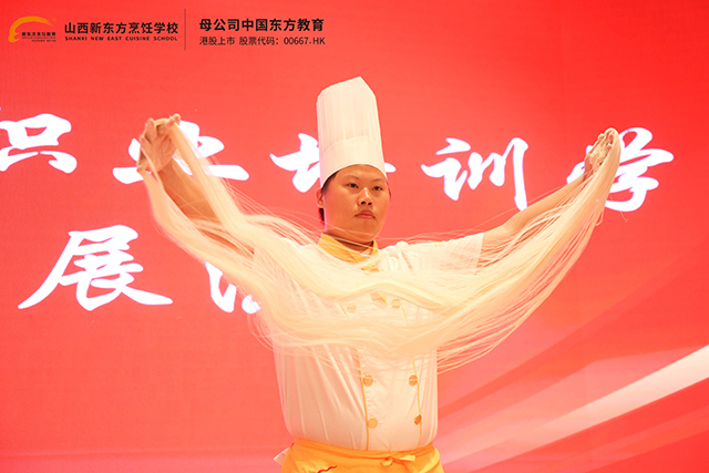 為了讓山西面食更加有特色,有品質(zhì),有文化,也為了更好地繼承和發(fā)揚(yáng)山西面食文化,培育和打造山西美食文化品牌,山西新東方在積極開設(shè)中式面點(diǎn)課程的同時,成立面食表演社團(tuán)。社團(tuán)從成立之日起,就將“弘揚(yáng)山西面食文化、傳承面食制作技藝”當(dāng)作使命,經(jīng)過學(xué)校面點(diǎn)老師多年的訓(xùn)練和不斷的改進(jìn)與創(chuàng)新,將傳統(tǒng)面食制作進(jìn)行藝術(shù)化創(chuàng)作,并將雜技、街舞、流行音樂等表演貫穿其中,不僅展現(xiàn)形式更具表演性和觀賞性,更是讓山西面食有了藝術(shù)的生命力。