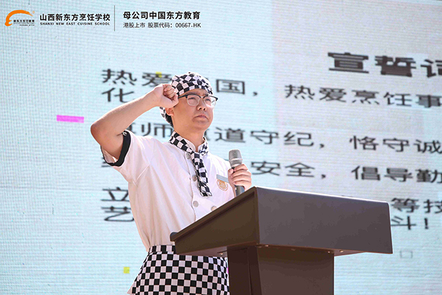開學(xué)第一課上, 山西新東方烹飪學(xué)校于曉曦校長以“職教美好,人人出彩”為題,對2024級新生寄予了深切的關(guān)懷和殷切的教誨。于校長先代表學(xué)校對全體新生表示熱烈的歡迎,并表示每一位同學(xué)年輕有朝氣,無論曾經(jīng)如何都已成為過去式,來到學(xué)校開啟新的篇章,希望同學(xué)們相信自己,相信在職業(yè)教育的廣闊天地里,每一個(gè)懷揣夢想的學(xué)子都能找到屬于自己的舞臺,綻放出耀眼的光芒。