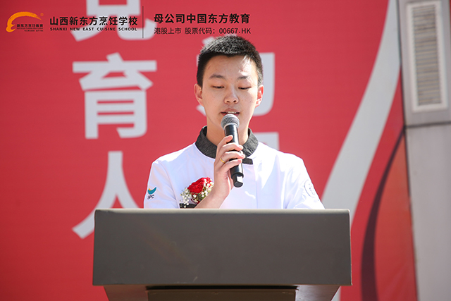 山西新東方烹飪學(xué)校校區(qū)負(fù)責(zé)人為本次成功學(xué)子報(bào)告會(huì)致辭,廖主任首先對(duì)本次培訓(xùn)的成功舉辦以及所取得的顯著成績(jī)給予了高度評(píng)價(jià)。他說(shuō):“這次的培訓(xùn)不僅是我們學(xué)校教學(xué)成果的一次展示,更是我們?nèi)熒餐Α⒉恍缸非蟮慕Y(jié)果。”他的話語(yǔ)中充滿了自豪和欣慰。