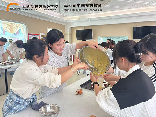 西點烘焙區(qū)彌漫著香甜的氣息,柔軟的面團(tuán)在學(xué)生們的手中變幻出各種造型,精致的蛋糕、酥脆的餅干、誘人的面包逐漸成型。在名師一對一的指導(dǎo)下,他們學(xué)習(xí)著如何精準(zhǔn)調(diào)配原料比例、掌握烘烤的溫度和時間,每一個步驟都充滿了新奇與期待。