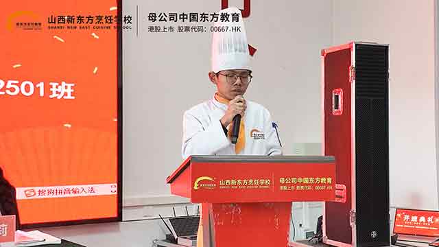 隨后,新生代表上臺(tái)發(fā)言。來自25級(jí)中餐專業(yè)的同學(xué)言辭懇切:“能夠來到山西新東方職校,我們感到無比幸運(yùn)。未來的日子里,我們會(huì)以飽滿的熱情投入學(xué)習(xí),刻苦鉆研專業(yè)技能,用專業(yè)素養(yǎng)贏得社會(huì)認(rèn)可。”
