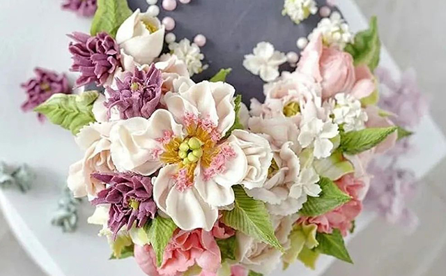 玫瑰花、旋轉(zhuǎn)玫瑰、五瓣花、康乃馨、牡丹、紅掌、康乃馨、百合花、向日葵、大麗花練習(xí)及花式整款蛋糕制作等