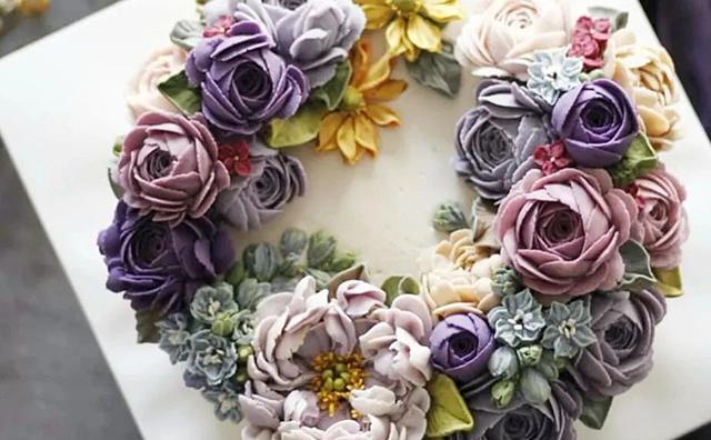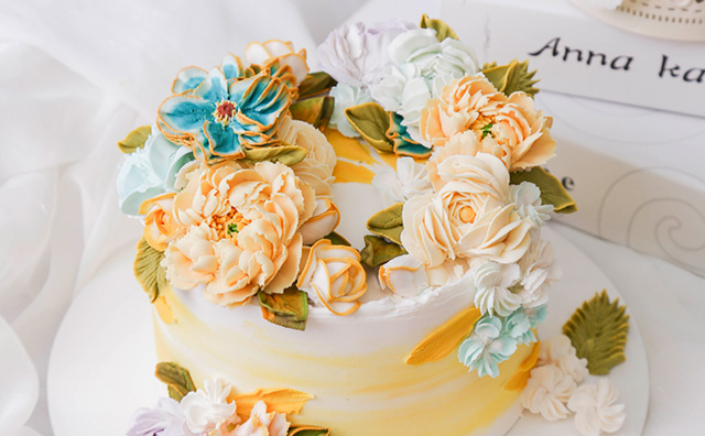 奶油霜的制作、玫瑰花、繡球、牡丹、向日葵、五瓣花、雛菊、荷花、康乃馨、山茶花、葉子等