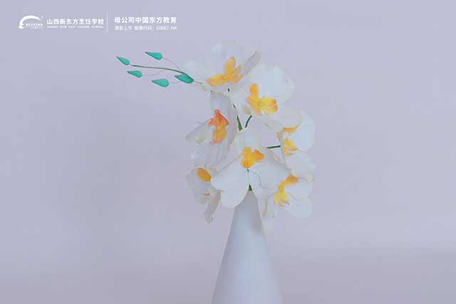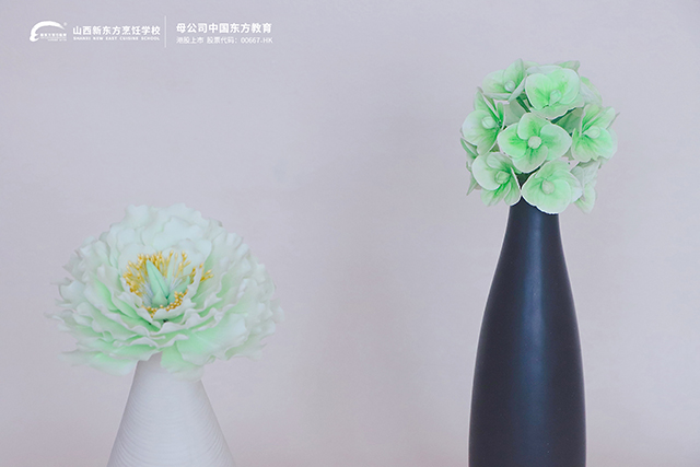 在山西新東方西點(diǎn)專業(yè)的師生眼中,翻糖既是食物,也是藝術(shù)品。它不僅滿足了人們對(duì)蛋糕口味及裝飾日益多樣化的需求,同時(shí)也讓西點(diǎn)班學(xué)員在動(dòng)手制作的過(guò)程中,享受到美食與生活的無(wú)窮樂(lè)趣。第一次在山西新東方西點(diǎn)班看到翻糖蛋糕,小編就在驚嘆“沒(méi)想到一件甜品蛋糕也能蘊(yùn)藏著工匠精神”。西點(diǎn)班制作的翻糖蛋糕,蛋糕胚被挺括而圓潤(rùn)的翻糖外殼包裹著,像一顆柔軟而甜蜜的心,無(wú)一不散發(fā)著生活的溫馨和浪漫。而讓人彈眼落睛的翻糖蛋糕,總少不了翻糖花的功勞。山西新東方西點(diǎn)班學(xué)員用翻糖手工制作的每一朵糖花,都詮釋了手工藝者對(duì)生命的理解。