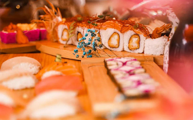 做壽司,除了需要考慮各食材口感,每個色彩搭配也是非常講究的,比賽結(jié)束后,展示出來的色香味俱全壽司拼盤讓評委老師們都眼前一亮~